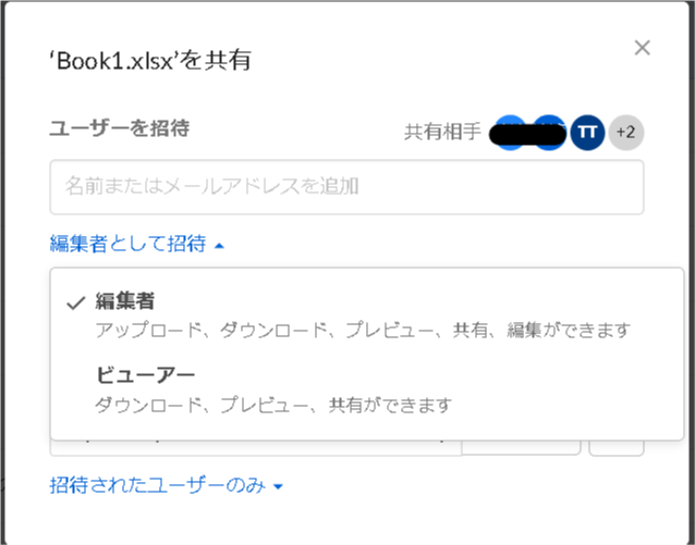 上記の設定の場合、テナント(組織のBox環境)の管理対象ユーザー以外のユーザーを招待しようとすると該当のコラボレーションエラーが発生します。
