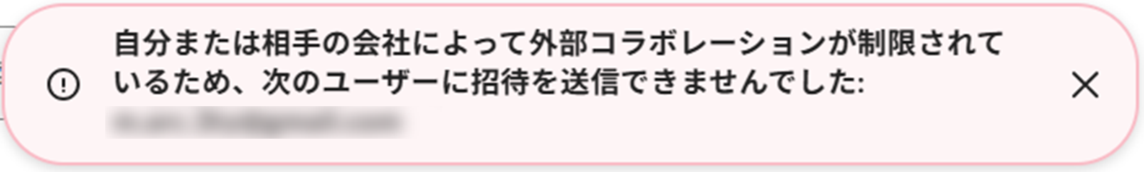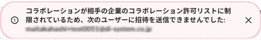 「コラボレーションが社内のコラボレーション許可リストに制限されているため、次のユーザーに招待を送信できませんでした」